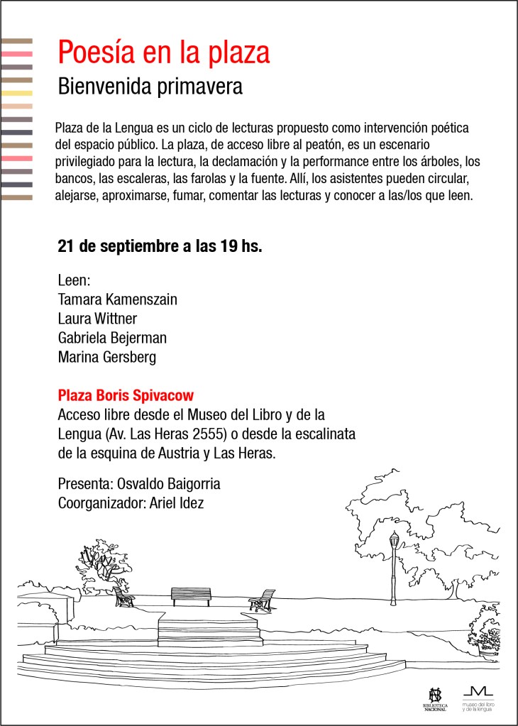 Así que intentando recuperar el carácter lúdico y abierto de la antigua ágora como centro de teatralidad y expresión literaria, nos propusimos intervenir poéticamente la placita gestionada por el Museo del Libro y de la Lengua en cuatro encuentros, uno por mes, a las 19 hs. durante la temporada primavera-verano de 2012.