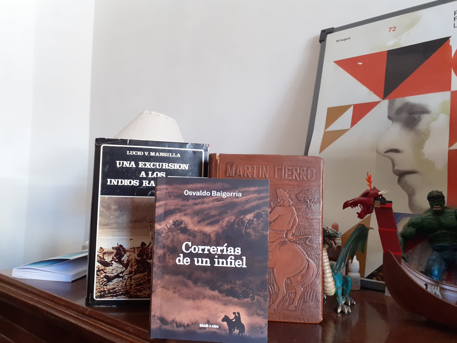 Presencias literarias dichas y gozadas en este libro: ante todo los ranqueles de Mansilla, también el Martín Fierro leído como una Biblia loca, contradictoria (palabra de la semana) que así como recomienda afincarse en tierra de uno («vaca que cambia querencia se atrasa», no?) también propone «¿A qué andar pasando sustos? Alcemos el poncho y vamos».Ay, esas dualidades.Y el jugo que se les saca cuando se es un Baigorria.Bueno, eso, esta fue mi lectura finsemanal. Queda claro que quiero compartirla y que todos la lean.