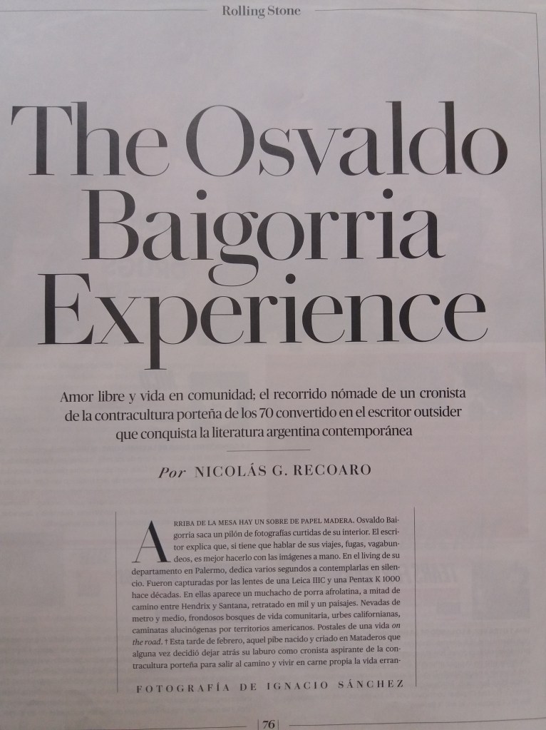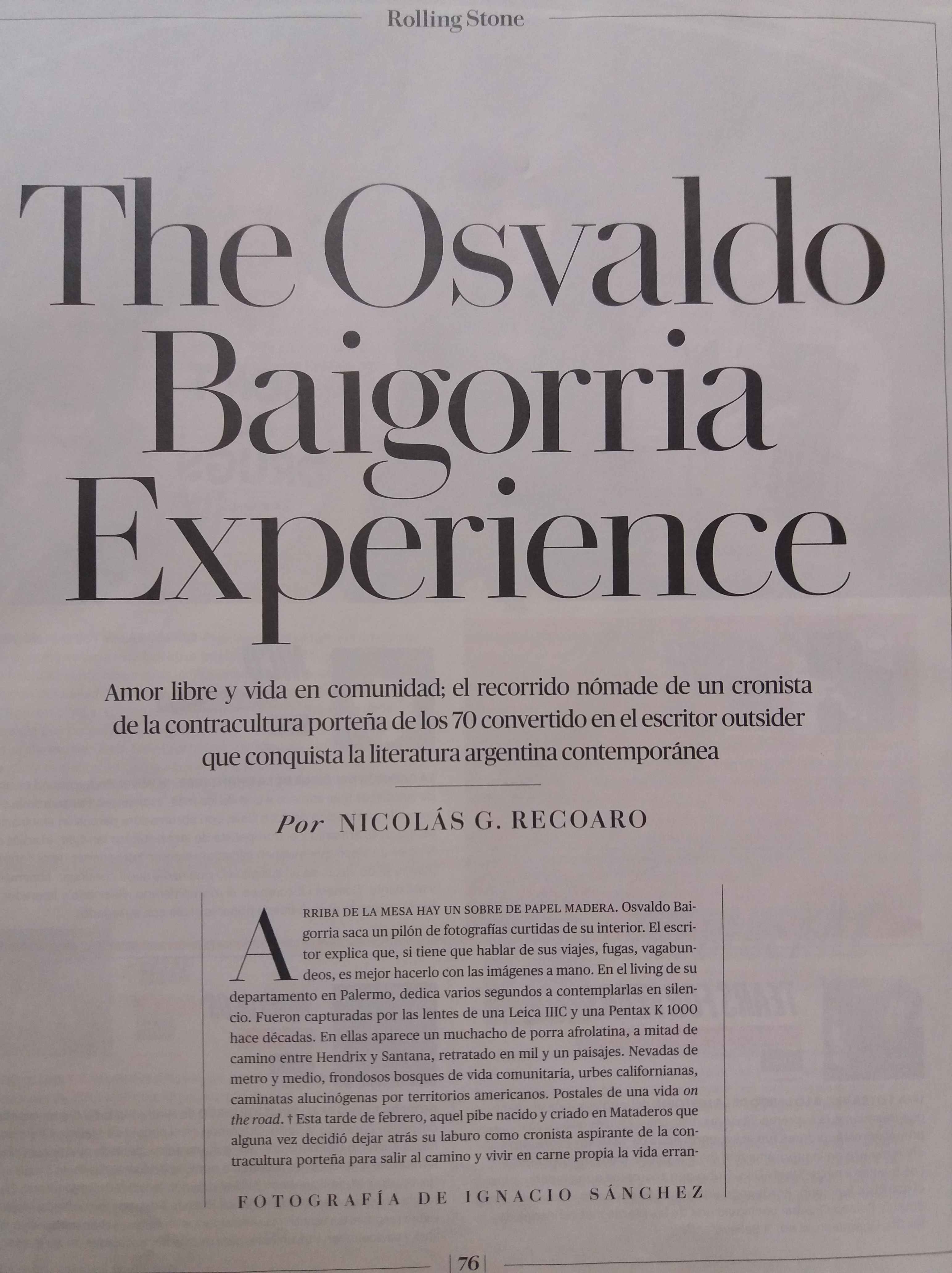 Sobre la mesa hay un sobre de papel madera. Osvaldo Baigorria saca un pilón de curtidas fotografías de su interior. El escritor explica que si tiene que hablar de sus viajes, fugas, vagabundeos, es mejor hacerlo con las imágenes a mano. En el living de su departamento en Palermo, dedica varios segundos a contemplarlas en silencio. Fueron capturadas por las lentes de una Leica IIIC y una Pentax K hace décadas. En ellas aparece un muchacho de porra afro-latina, a mitad de camino entre Hendrix y Santana, retratado en mil y un paisajes. Nevadas de metro y medio, frondosos bosques de vida comunitaria, urbes californianas, caminatas alucinógenas por territorios americanos. Postales de una vida on the road.