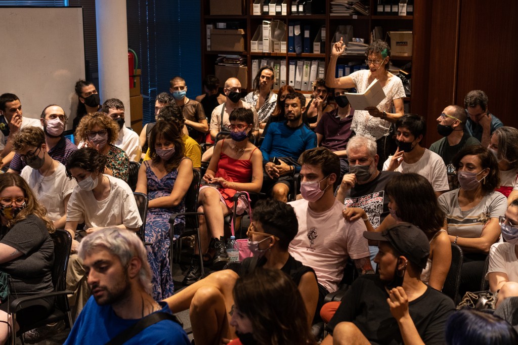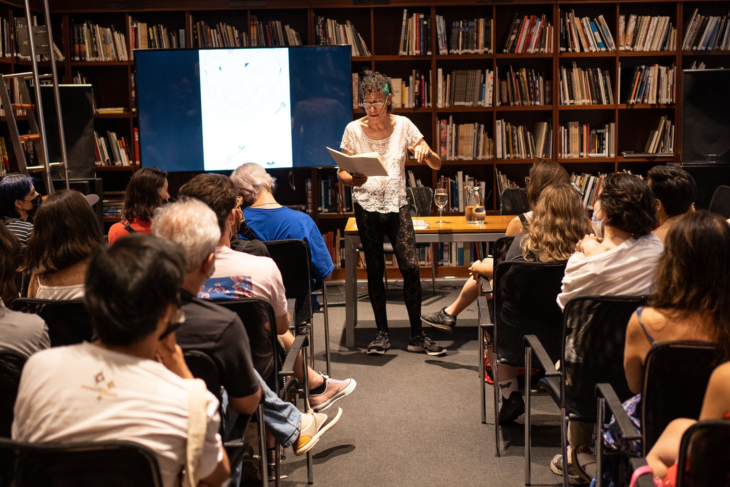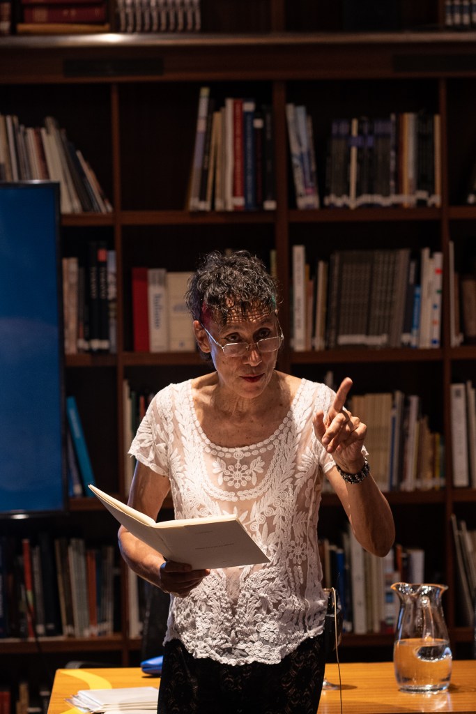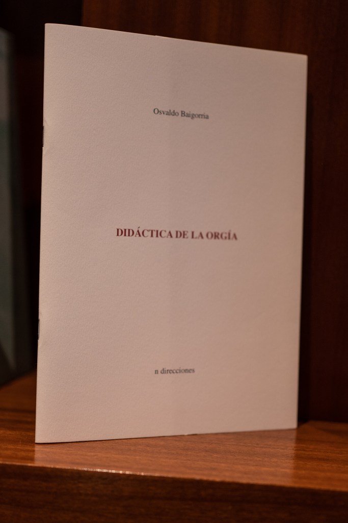 En conferencia performática durante el congreso «Estados de ánimo de la noche», convocado por Santiago Villanueva en el Malba (Museo de Arte Latinoamericano de Buenos Aires), el 20 de noviembre de 2021, con lectura de fragmentos del libro Didáctica de la orgía, publicado por n direcciones, sobre el que puede encontrarse una entrevista por aquí.