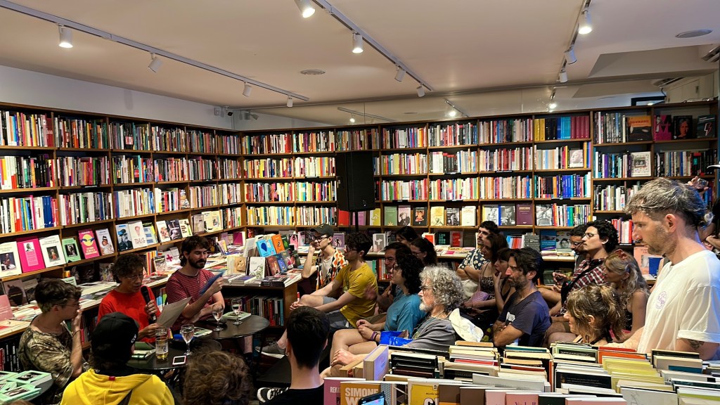 Acompañado (o más bien, flanqueado) por Santiago Villanueva y Fram Visconti, leí varias cartas y respondí inquietudes en la que fue una de las mejores presentaciones que recuerdo: cálida, emotiva y con alta participación de un público conmovido por esas palabras escritas en finísimo papel «vía aérea» y enviadas hace más de cuatro décadas desde Sao Paulo y La Tablada.