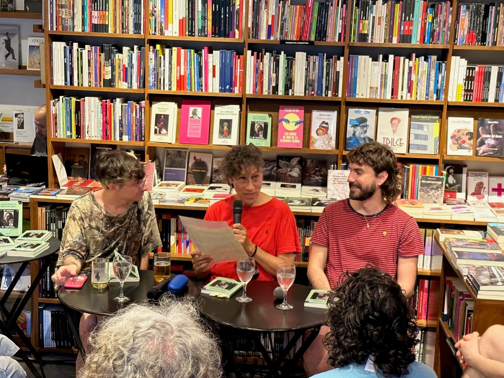 Con Santiago Villanueva y Fram Visconti en la presentación de Un barroco de trinchera, Fetiche Libros, Thames 744, CABA.